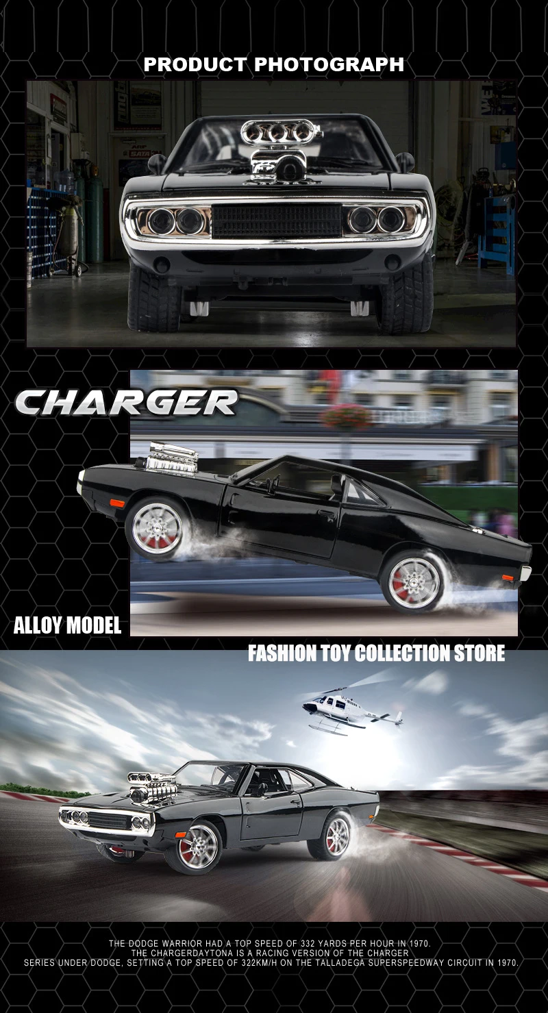 1:24 Challenger 1970 Fast & Furious 7 Alloy Car Model Diecasts Toy With Sound and Light Vehicles Decoration Toys For Kids Gift